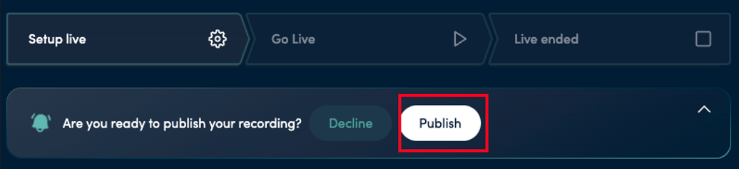 If the stream went smoothly and no editing is required, click the publish button. This will upload the recorded version of the presentation to the same audience link for on-demand viewing.