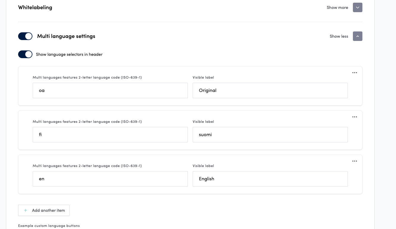 To enable interpretation in Web Studio, go to Advanced Settings and create the languages to be interpreted under Multi-Language Settings.