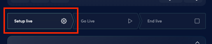 Click on Setup live to do that. This will not publish your stream to audience yet but it prepares the event for going live by starting the video processing and connecting the Teleconference (if enabled) to the Web studio.