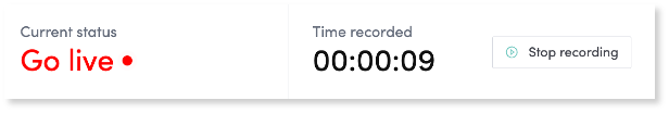 On top of the tool, you can see a state selector. When event is in Pending mode, the stream is not visible to the audience on the event page. When you click Go live, your event site starts streaming your content.
